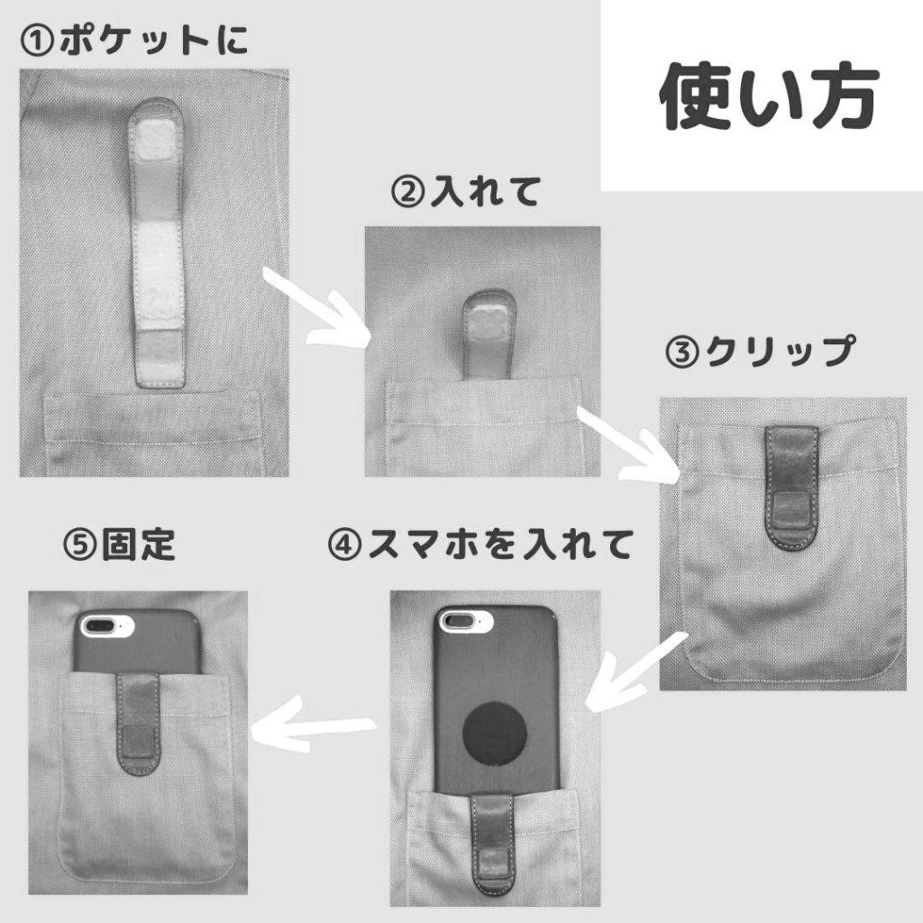 スマートフォンなどをポケットや鞄などに取り付けることができます。